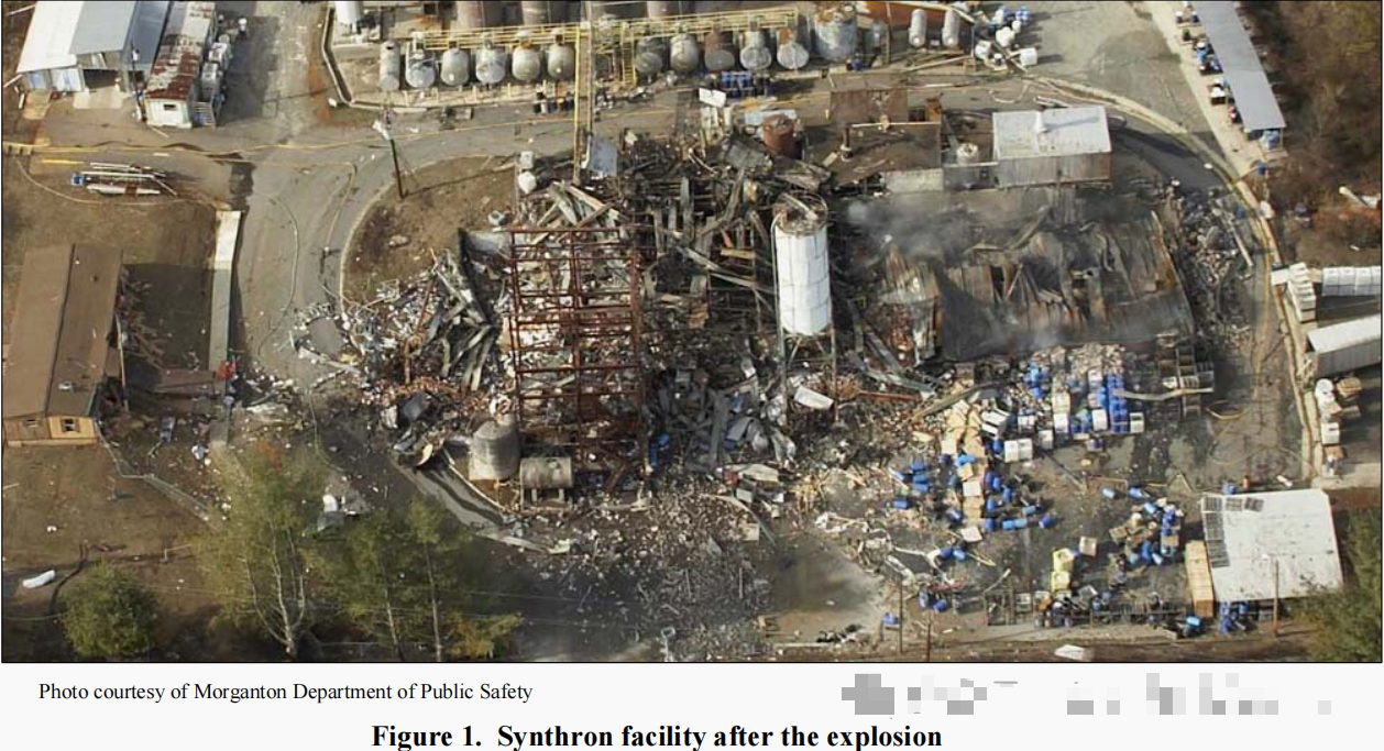 2006年1月31日,位于北卡罗纳州的摩根顿的Synthron公司发生爆炸,爆炸造成了1名工人死亡,14名人员受伤(其中两人重伤)。公司整个区域被夷为平地,同时爆炸破坏了附近社区的建筑。两座教堂和一所房屋被定为危房,离爆炸地点三分之一英里处的玻璃被打碎。两名路过爆炸现场的市民受了轻伤。